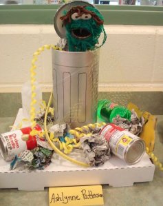 Third grade students in Mrs. Amy Duncan’s class took on a challenge from their teacher to make something new or artistic out of garbage and junk collected at home.