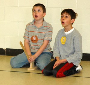 Centered around space, the students had a chance to build launchers and then working with angles and tension got points for calculating the precise angle and strength to hit a “planet” target halfway across the gymnasium.