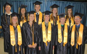 Top 10 are here. and the Lapeer West Top 10 are here.Lapeer West Top 10 students. Back Row (left to right), Garrett Gauthier, Brynn Foss, Brett Cavanaugh, Casey Spooner, and Caitlin O’Brien. Front Row (left to right) Charlotte Brown, Stephanie Kossak, David Jackson, Daniel Barker, and Scott Boller.