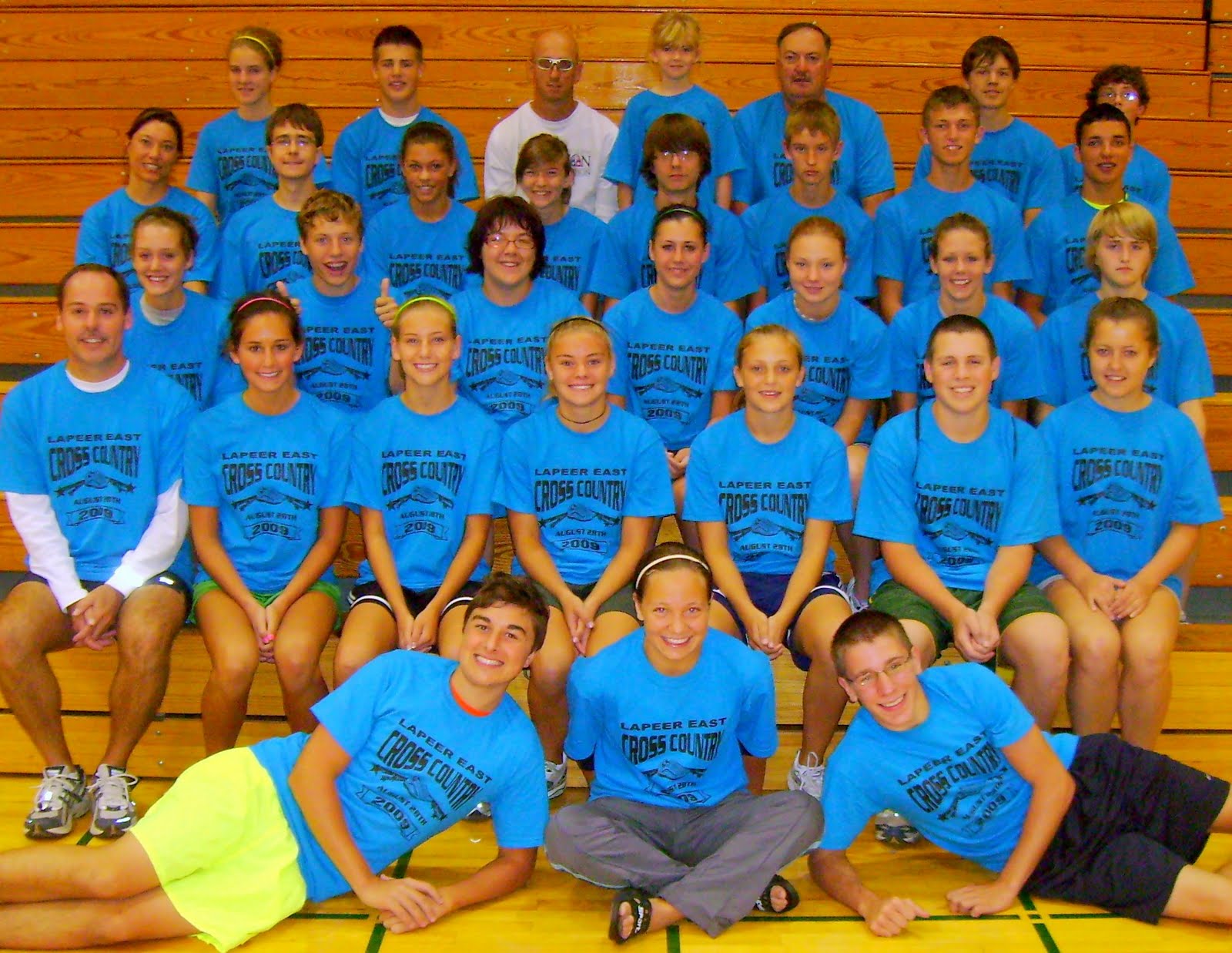Wearing shirts with the logo ‘Running Because We Care’ the Lapeer East Cross Country Team ran three miles through the rain on Friday, August 28th, in support of a team member with cystic fibrosis. The 32-member team, along with Coaches Duane Machesney, Manny Schmidt and Noelle Grignani, raised $4,425 for the Cystic Fibrosis Foundation.