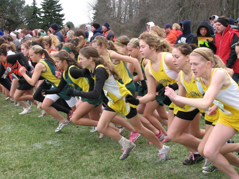 Cross County may only be known for the individual competition at each race and the attention given to the few gazelles that that cross the finish line first. What may not be known is how the individual runners accumulate points for the team. Even less is known is the role that those runners who do not emerge in the front of the pack play for the team. This is a sport that fellow team mates encourage each other to never give up, as the last runner is cheered in and provide the statistics that they have also won, “a PR”. Cheers come from cross town rivals Lapeer West, as they all just keep running their own best race.