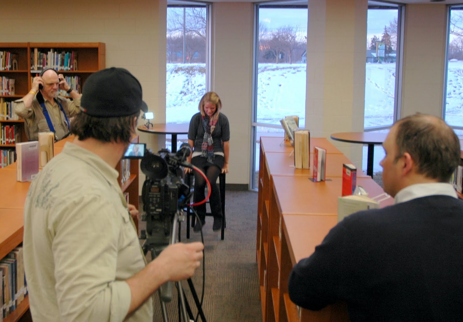 A camera crew begins filmed Ms. Laura Grieco Matthews, Lapeer East teacher and yearbook advisor, and several yearbook students for the commercial.
