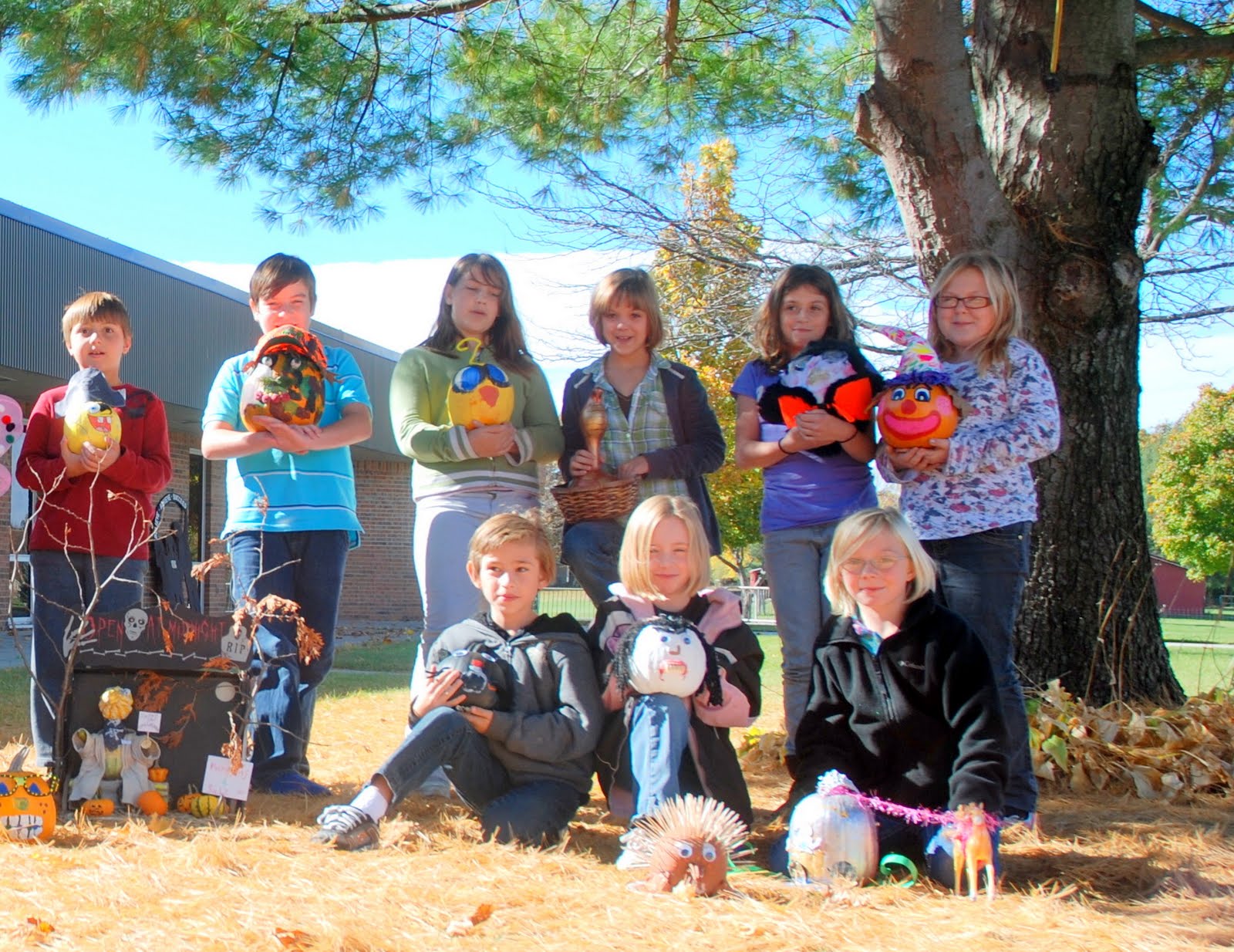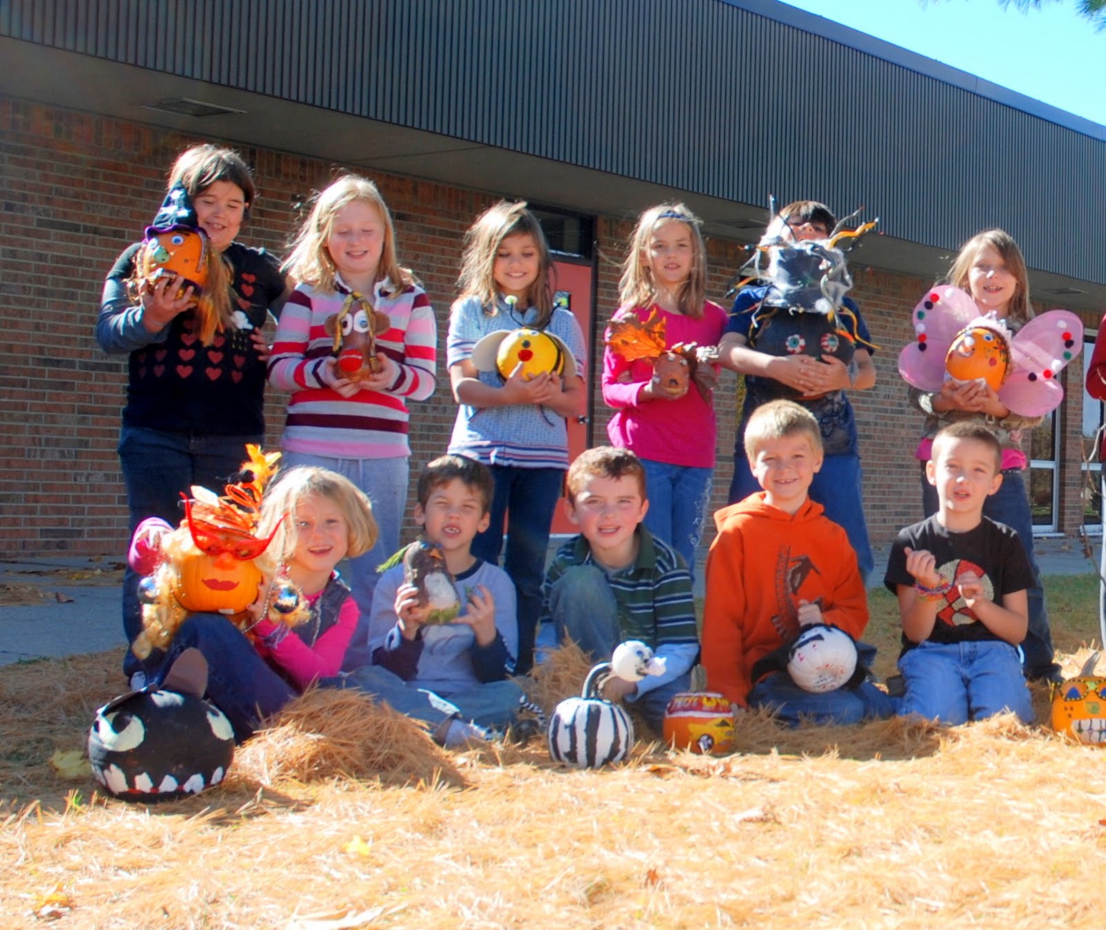 Students gathered in front of Seaton Elementary on Oct. 22 to show off the two dozen winning pumpkins.
