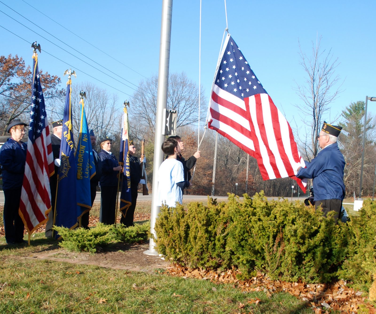 Legion members and students took part in the morning flag-raising ceremony and sang patriotic songs.