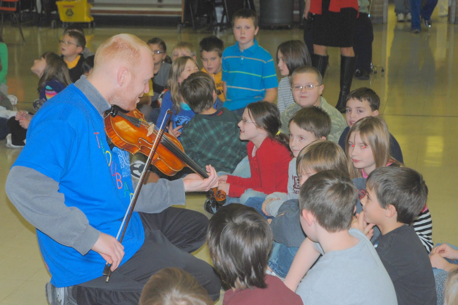 The musical tour included a string quartet and storyteller from the Flint Institute of Music who offered up a fun, music-filled half hour “in the round” in the school cafeteria.