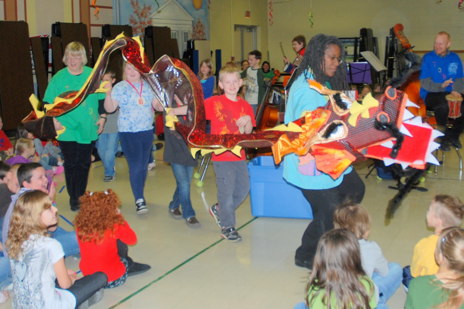 The Troubadours encouraged Lynch students to participate and use their imaginations, and then get up on their feet to dance to classical, folk and ethnic music. The Lynch visit included a view of Mozart’s Austria, the dragon dance of China and the traditional dances of the Scots who now make their home in Nova Scotia. A rousing chorus of “Take Me Out to the Ballgame” brought students back home to the USA.