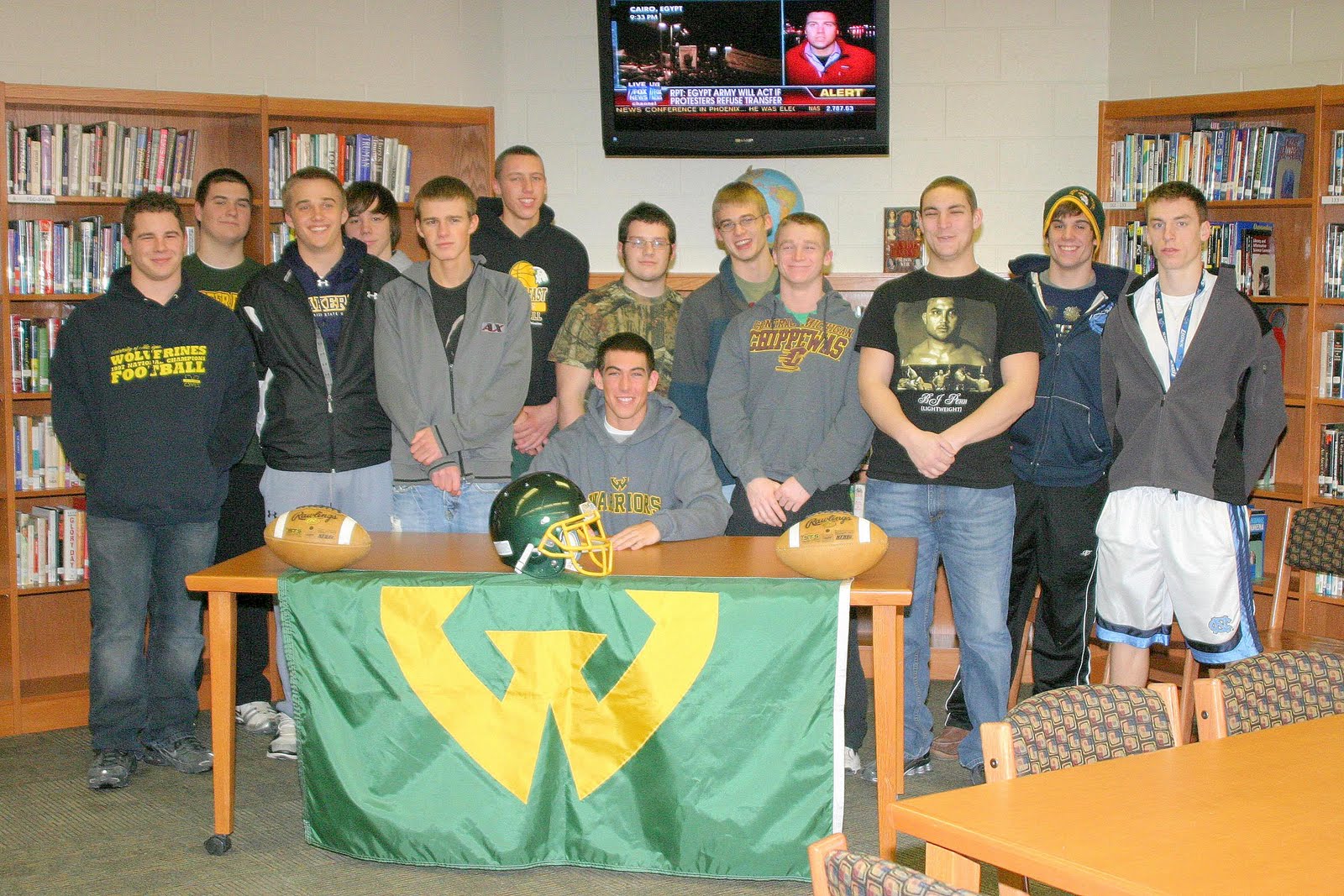 Lapeer East senior Mike Sawchuk on February 10 celebrated his signing of a letter of intent to play football for Wayne State University next year.