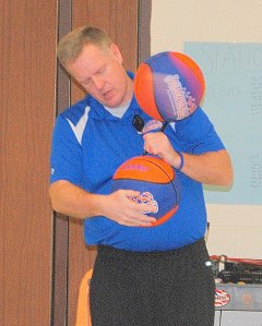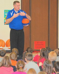 Using a broad mix of basketball stunts, humor and common sense, speaker Jim “Basketball” Jones kept the crowd “in the game” February 9 as he visited Seaton Elementary with his motivational message.