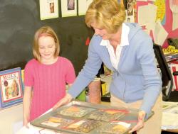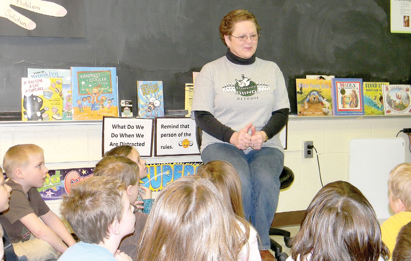 Above, Ruth Ann Prey, a retired Lapeer teacher, talks to the second grade class at Mayfield Elementary School and applauds them for their hard work raising money. To the left, student Ella Coulter shows off the collection jar she made. The students used the jar to collect spare change from parents and students in other classrooms. On the right is the letter Ella wrote to help with the fundraising efforts.