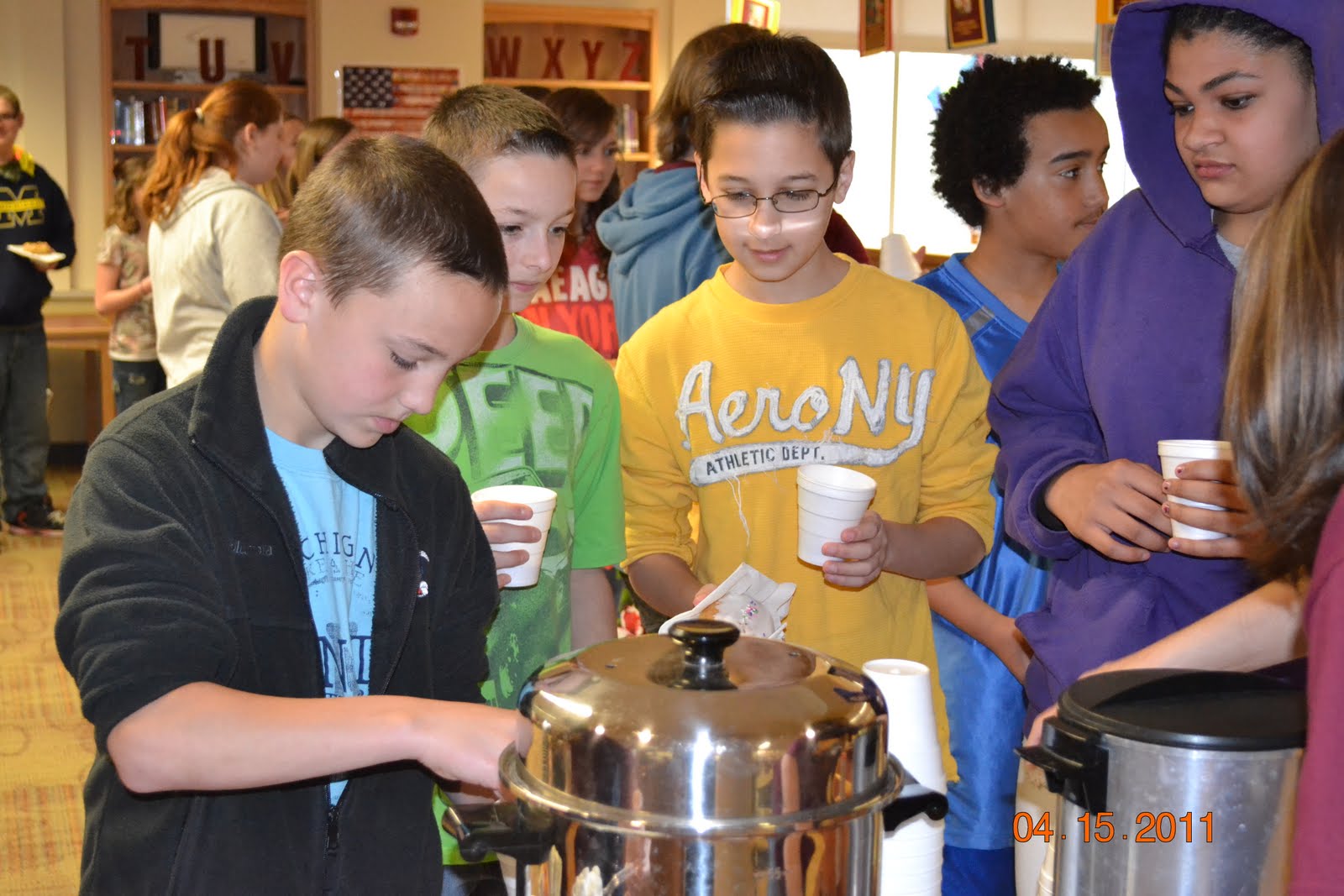 the book “Red Scarf Girl” as students ate donuts and drank hot cocoa. One lucky winner, 6th grader Courtnee Miller, won a copy of the book.