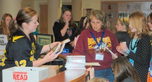Students were able to check out copies of the book donated by the Rolland-Warner PTC immediately after the book talk. Rolland-Warner is using the YA Café concept as an initiative to promote literacy for all. The program kicks off next week at Zemmer Middle School.