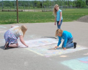 Students in all grades particiapted in the chalk drawing contest sponored by the Lapeer Rebeckahs, turning the west side of the school yard into a gallery of visual delights.