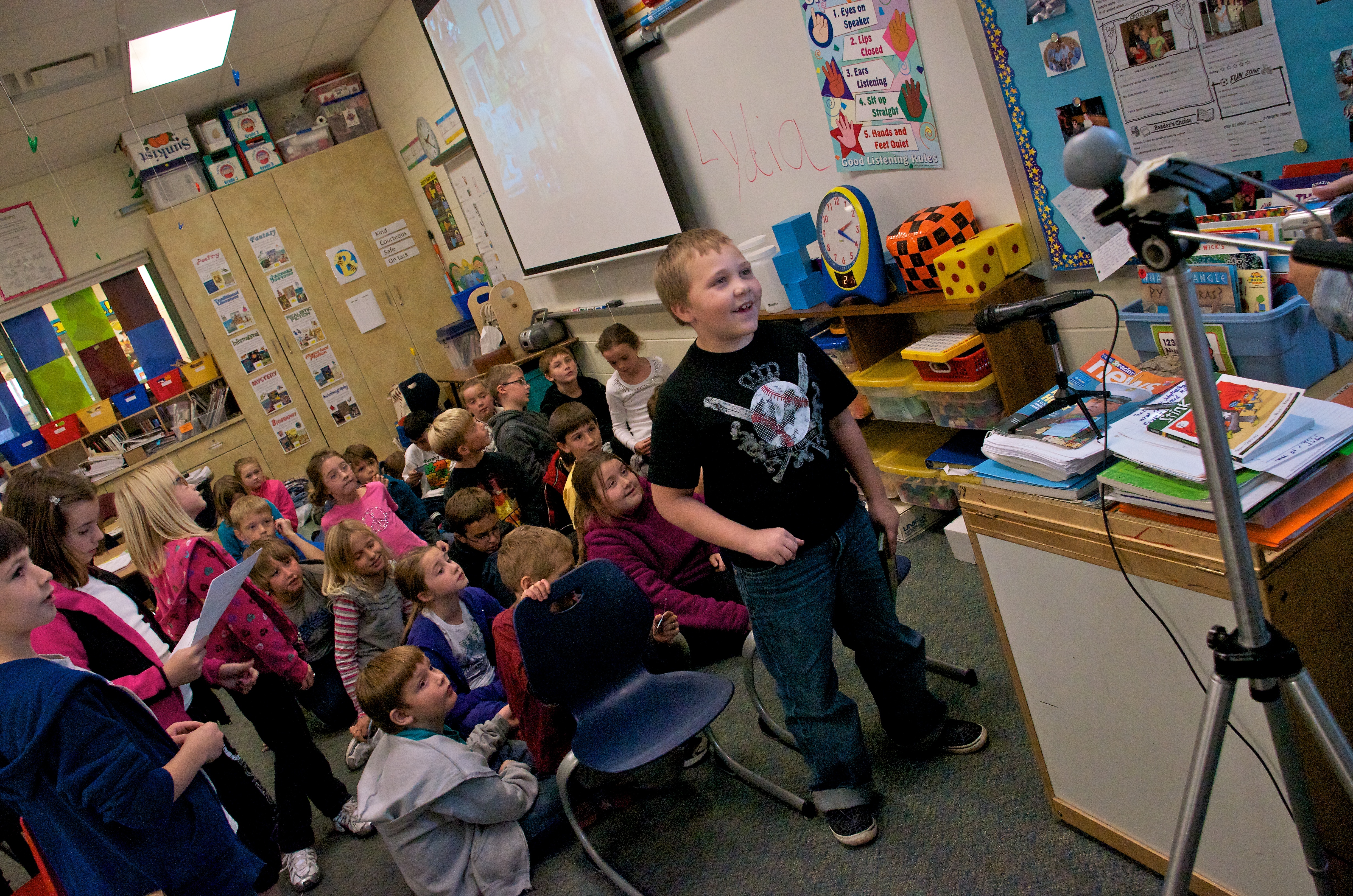 Amy Duncan’s third grade classroom at Murphy Elementary was chosen to take part in a Skype visit with acclaimed author Megan McDonald. Best known for her Judy Moody series, McDonald spoke to the students from her office in California on Wednesday afternoon.