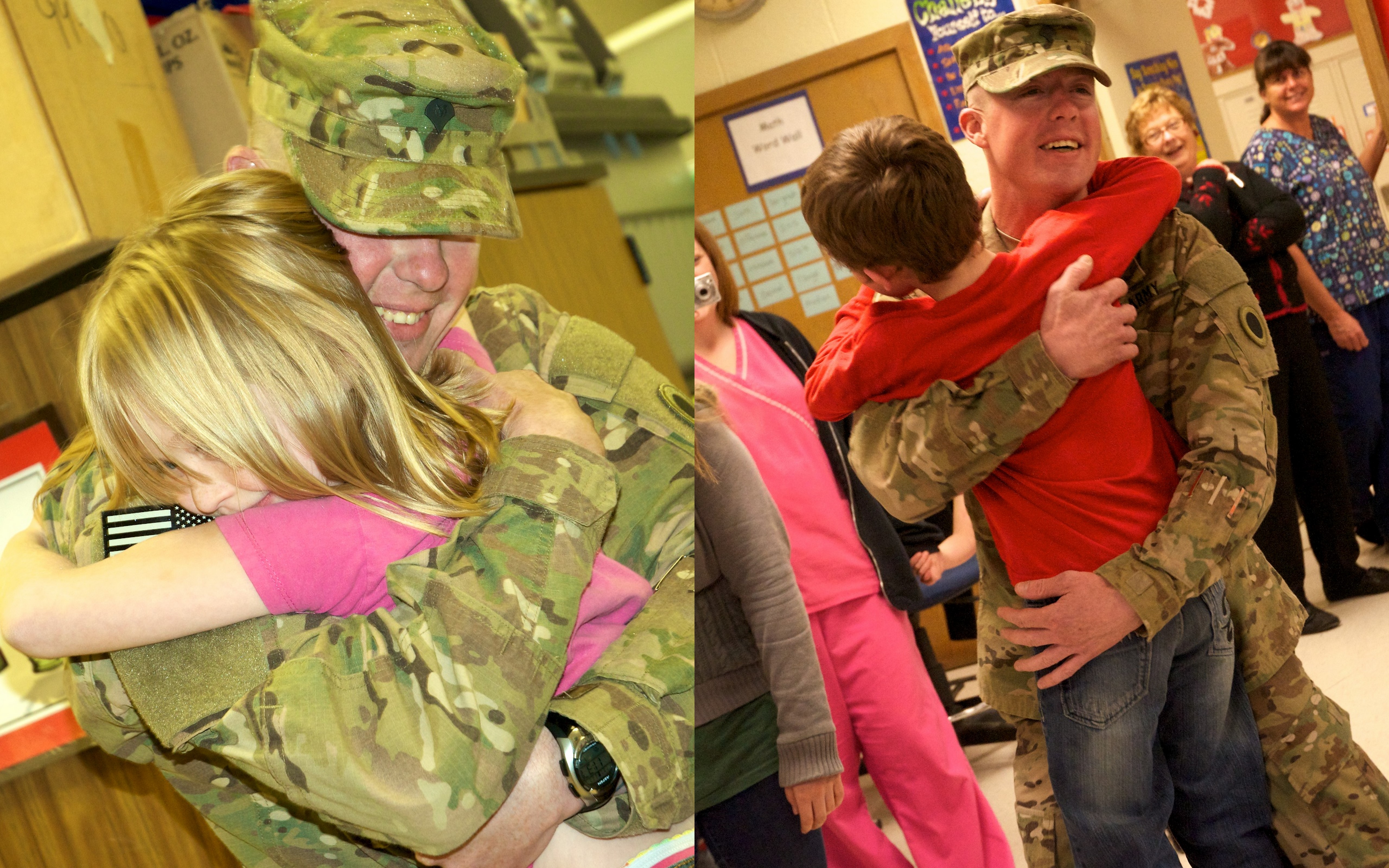 Two Mayfield Elementary students were surprised in class today with an early Christmas present they weren’t expecting. Jeff Stephen, a member of the Army National Guard, has been stationed in Mississippi since September in preparation for deployment to Afghanistan next month.