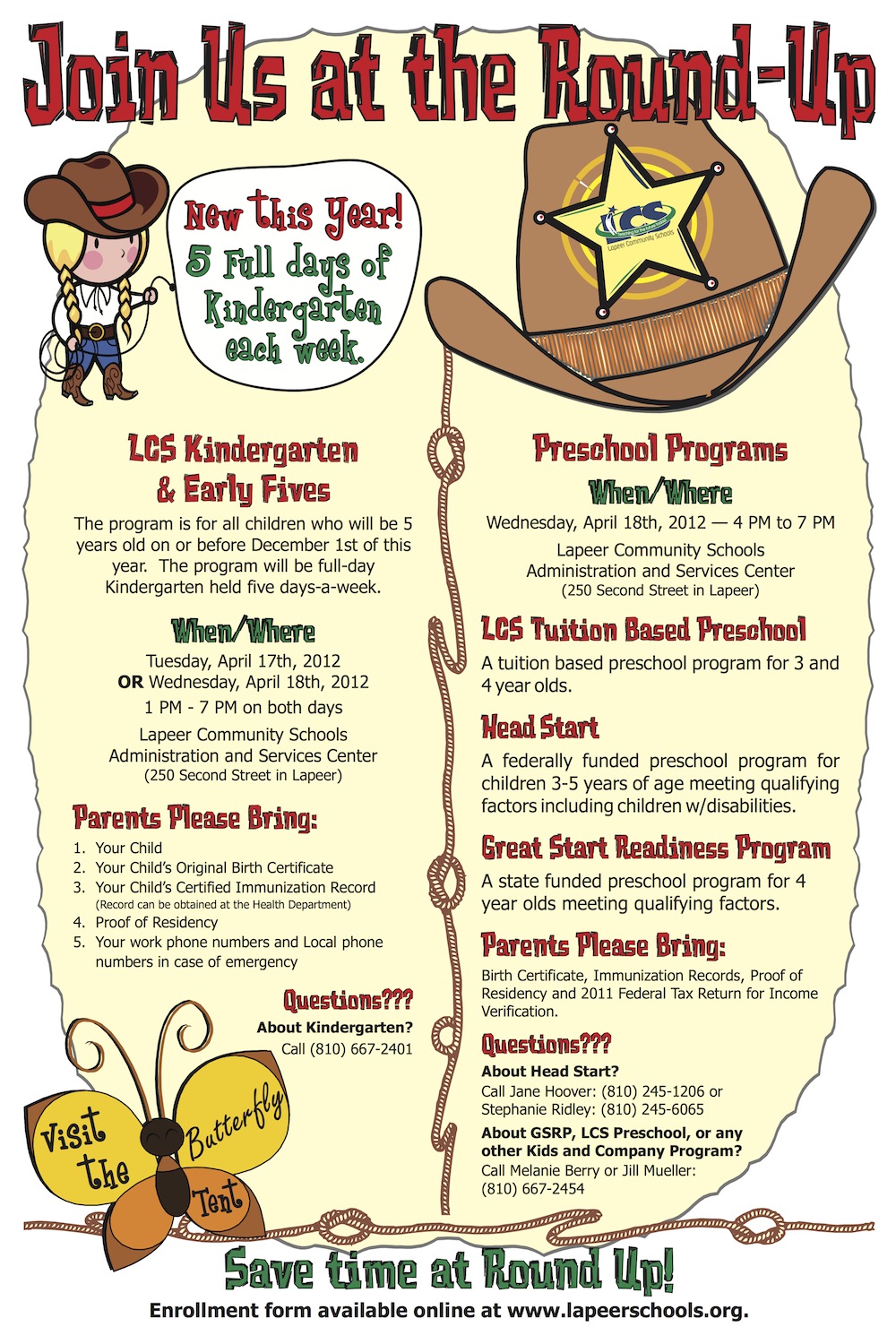 Coming April 17-18: LCS Kindergarten Round-up March 16, 2012 by The Bolt It’s almost time to get the little ones rounded up for Kindergarten! Here’s all the information you’ll need for the upcoming Round-up on April 17-18 at the Administration & Services Center. (Click to enlarge) Share this: Click to share on X (Opens in new window) X Click to share on Facebook (Opens in new window) Facebook Click to email a link to a friend (Opens in new window) Email Click to print (Opens in new window) Print Like Loading... The Bolt Leave a comment Cancel reply Δ