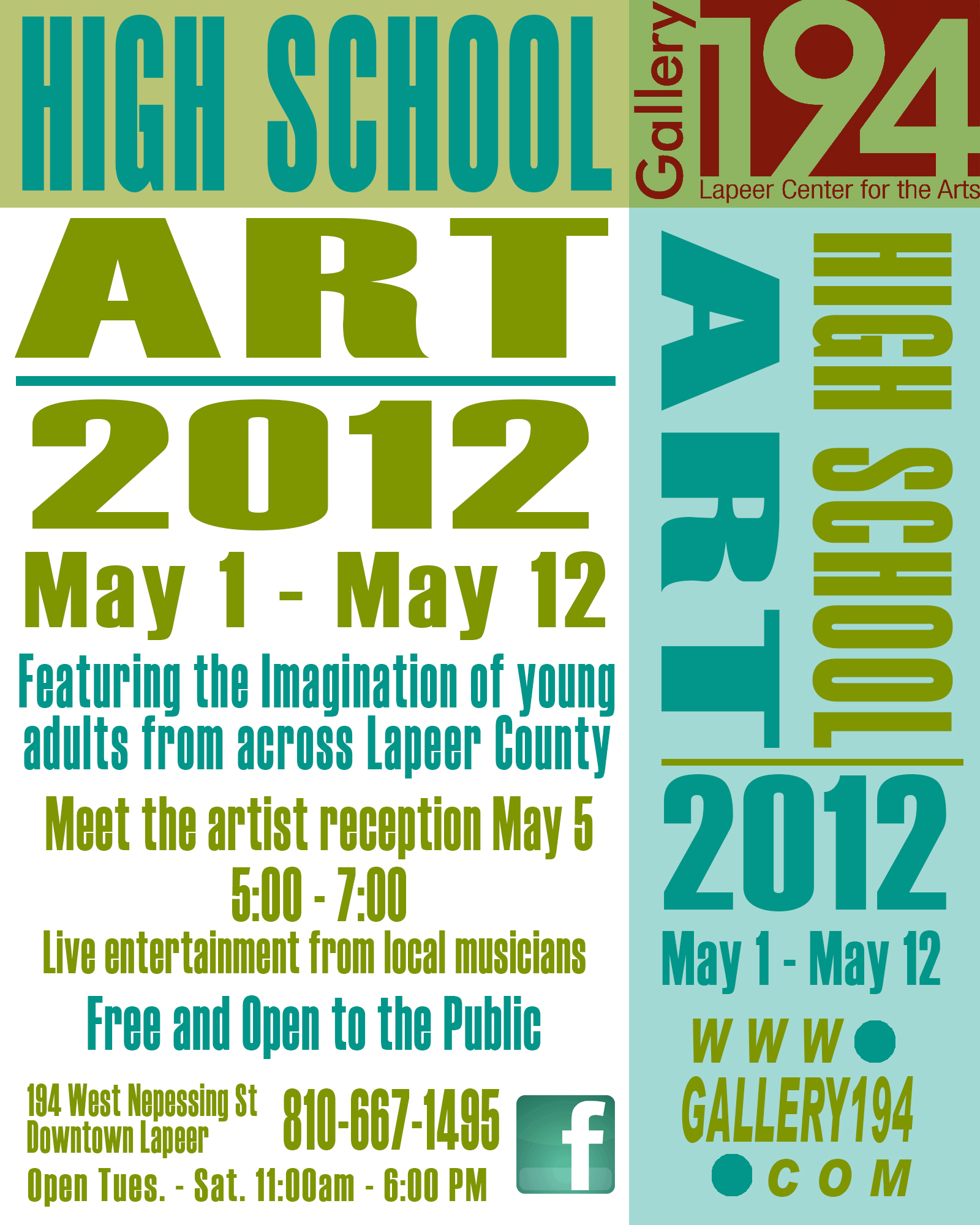 Gallery 194 in Lapeer to showcase work of local high school students April 18, 2012 by The Bolt Gallery 194 in downtown Lapeer will be showcasing many of the great works of art of local high school students. The showcase is free and open to the public from May 1-12. Gallery 194 is located at 194 W. Nepessing St., Lapeer. Share this: Share on X (Opens in new window) X Share on Facebook (Opens in new window) Facebook Email a link to a friend (Opens in new window) Email Print (Opens in new window) Print Like Loading... The Bolt Leave a comment Cancel reply Δ