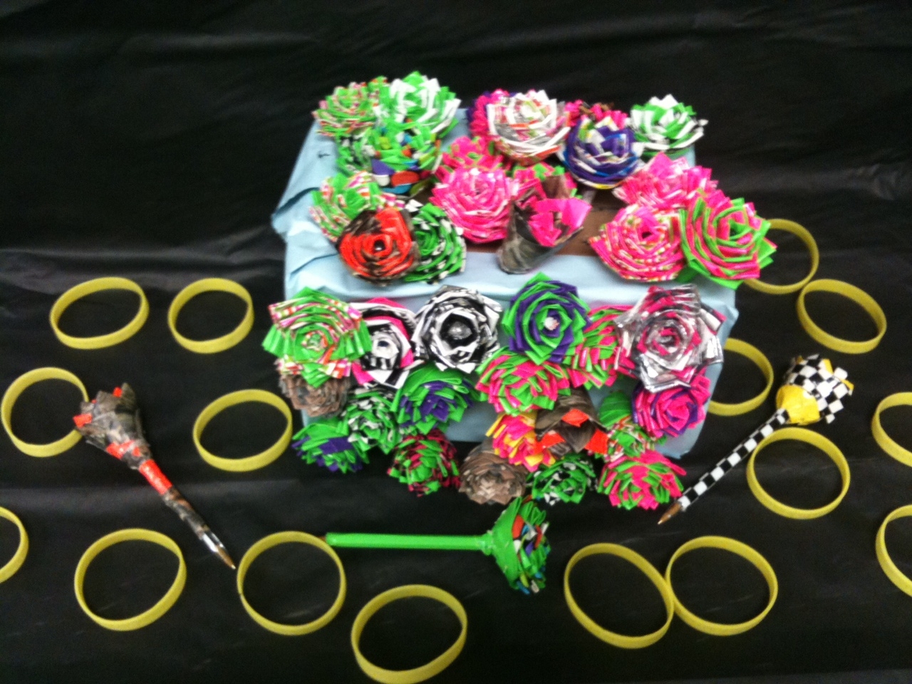 The two groups are selling the following items; duct tape flower pens (in various colors and patterns) for $2 and yellow silicone bracelets that say “BULLYING STOPS HERE” for $1. All the proceeds from these fundraisers will be donated back to Rachel’s Challenge and to help start the Rachel’s Challenge club at Rolland-Warner.