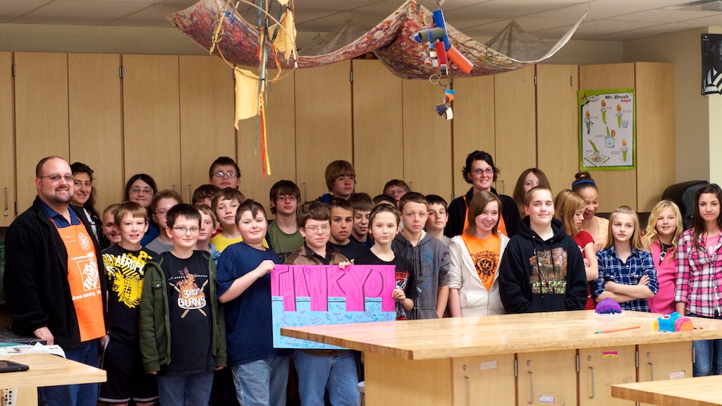 Tuesday afternoon, sixth graders in Ms. Reinart’s art class came together to send out a special thanks to Home Depot in Lapeer for its generous donation to the school’s burgeoning Bee Club.