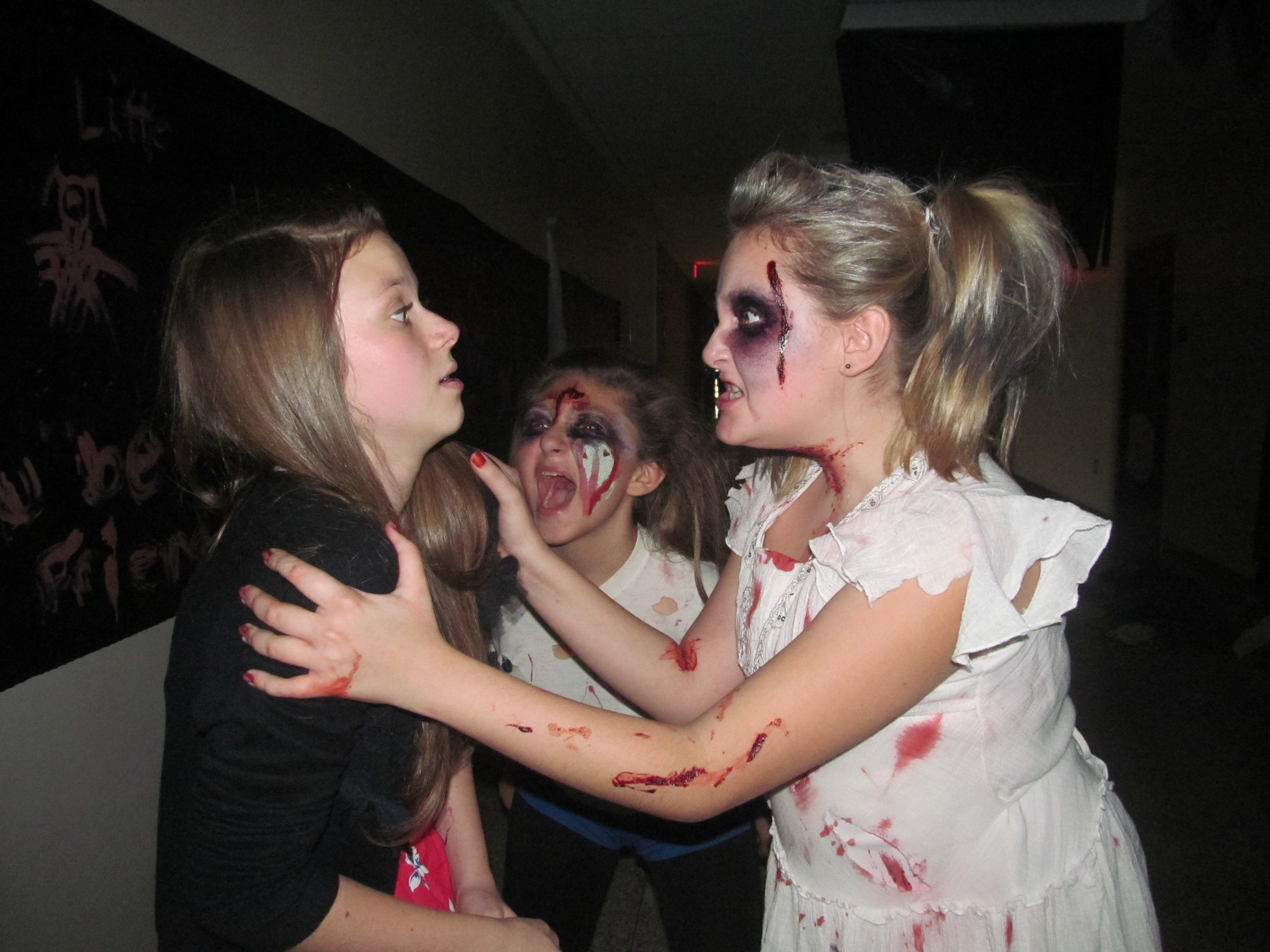 Zemmer National Junior Honor Society students certainly know how to create quite a scare. On Saturday, October 13th, over forty NJHS students, with some parental help, gave Zemmer a spooky overhaul by creating the first Ghosts of Zemmer Haunted House. Groups of elementary aged and middle school students were given ‘tours’ by zombie nurses who treated kids to screaming ghosts, zombies, and a truly insane library asylum that scared the covers off the books, and the pants off the visitors.