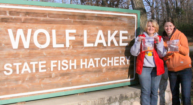 Mike Wiltse, Maja Burris and DuAnne Cook traveled to the Wolf Lake Fish Hatchery in Mattawan, Michigan recently for curriculum training and to pick-up a special delivery of Chinook Salmon eggs. They received approximately 200 eggs for each of the school’s two classrooms that will raise and place the smolt (young salmon) in a Great Lakes tributary in May.
