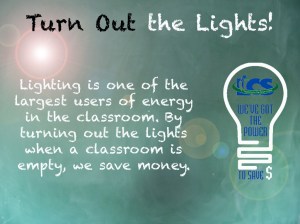 Advertisements, such as the one seen here, have been created and are being used in our buildings as a reminder to students and staff to be vigilant about energy consumption.