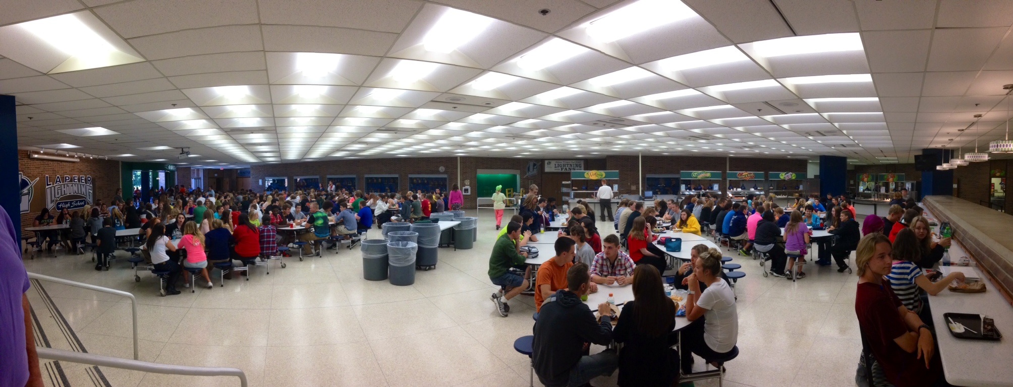 As many of you know, we totally revamped the cafeteria at Lapeer High School over the summer. The space looks much different now than it did a few months ago — new lightning lighting, service stations, tables, chairs, video monitors, etc.