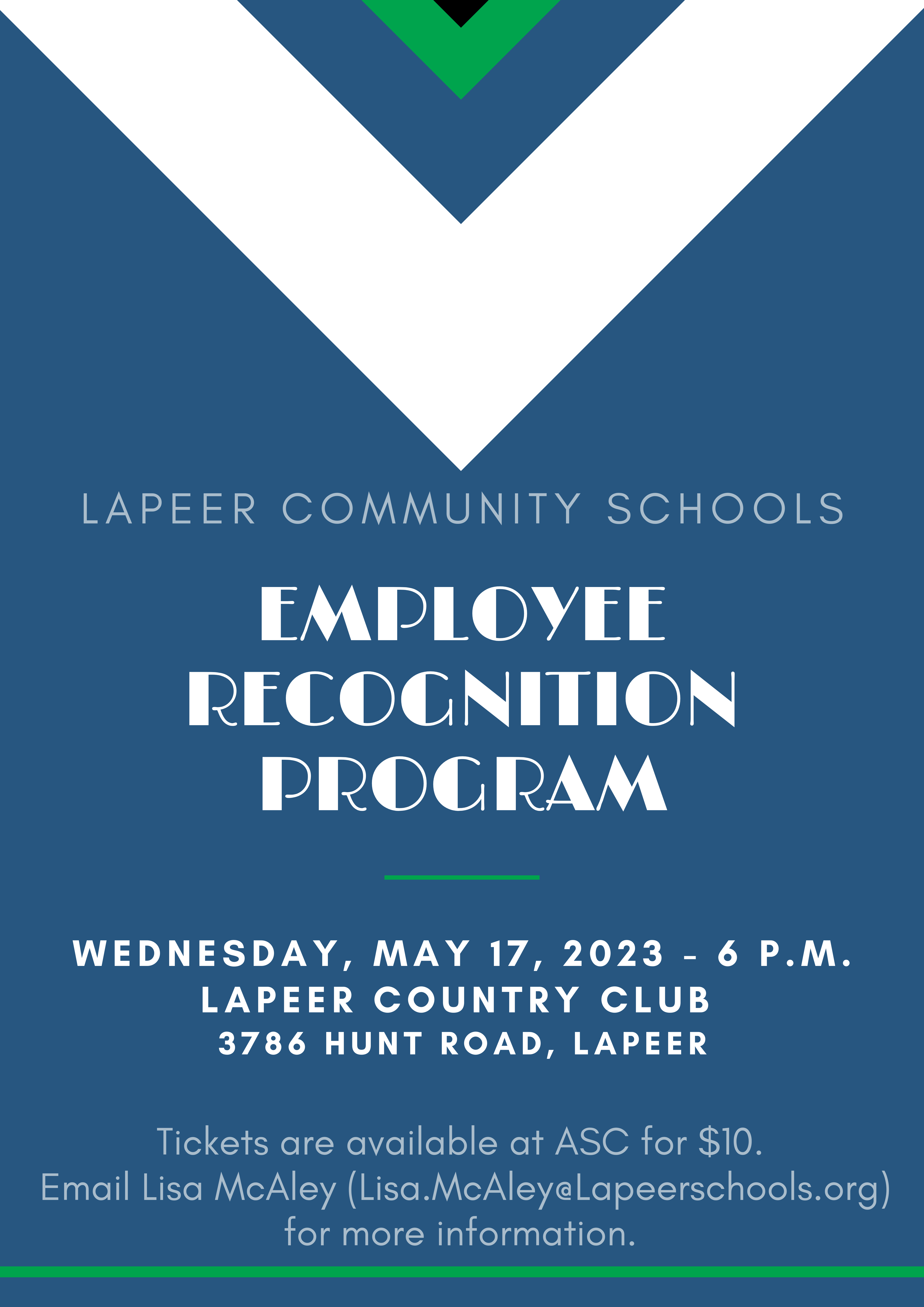 Tickets are available for $10 through April 28 at the Administration & Services Center. For more information, email Lisa McAley at Lisa.McAley@LapeerSchools.org