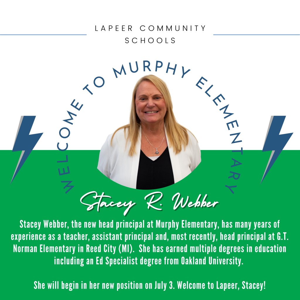 Lapeer Community Schools is excited to announce the hiring of Stacey Webber as the new principal for Murphy Elementary for the 2023-24 school year.