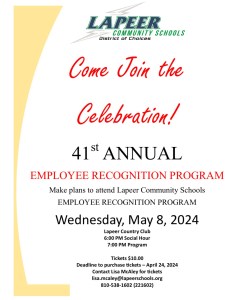 Tickets for the event are available for $10 now through April 24 at the Administration & Services Center. For more information, email Lisa McAley at Lisa.McAley@LapeerSchools.org.