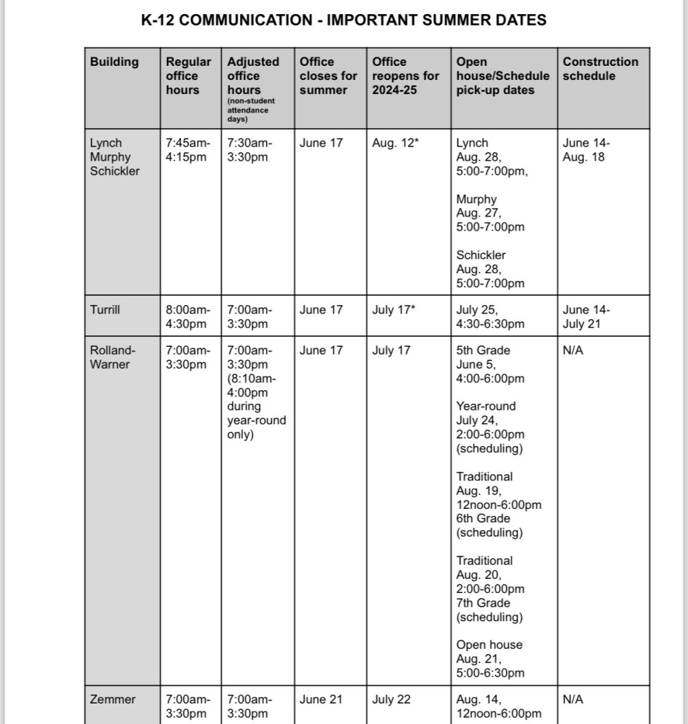 As the end of the 2023-24 school year is fast approaching, we wanted to communicate important dates for the summer months heading into the 2024-25 school year.