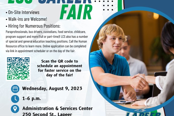 Are you looking for a career in K-12 public education? If so, we have a great opportunity for you! On Wednesday, August 9, we are hosting the LCS Career Fair at the Administration & Services Center (250 Second St. in Lapeer). We will have on-site interviews for full and part-time positions! Walk-ins are welcome between […]